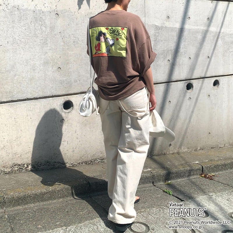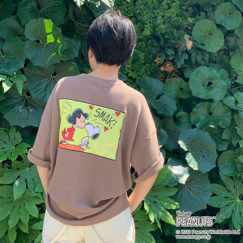 【PEANUTS(ピーナッツ)】スヌーピー&ルーシー/バックプリントワッフルTシャツ A(POPPINS)