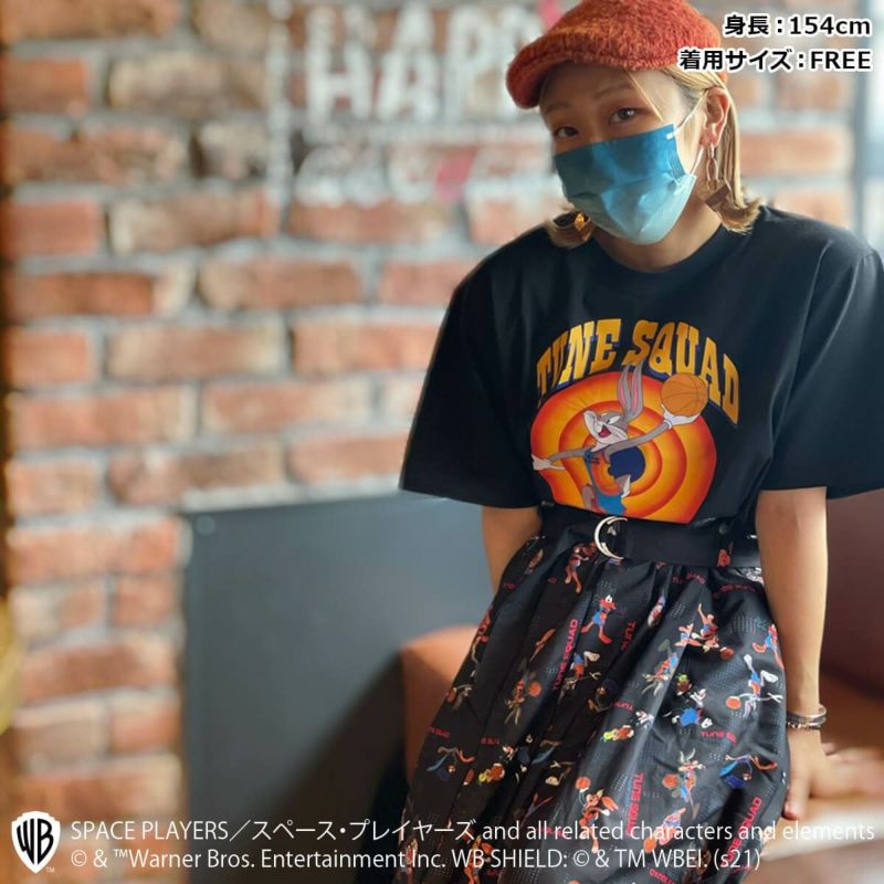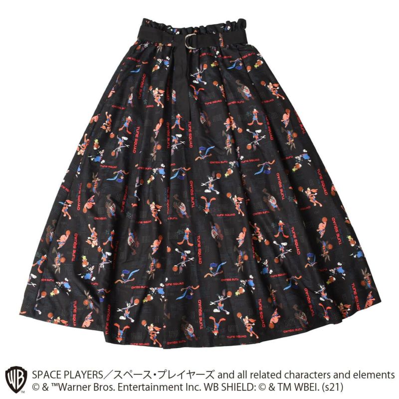 こちらはローラ・バニー、ポーキー・ピッグ、シルベスター、ダフィー・ダック、タズマニアン・デビル、ワイリー・コヨーテがデザインされた総柄デザインのスカートです。