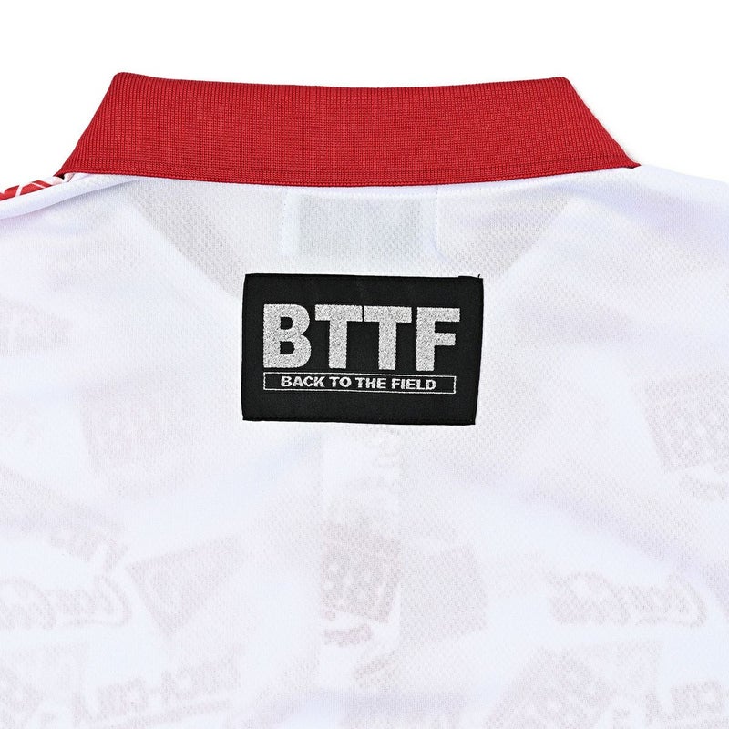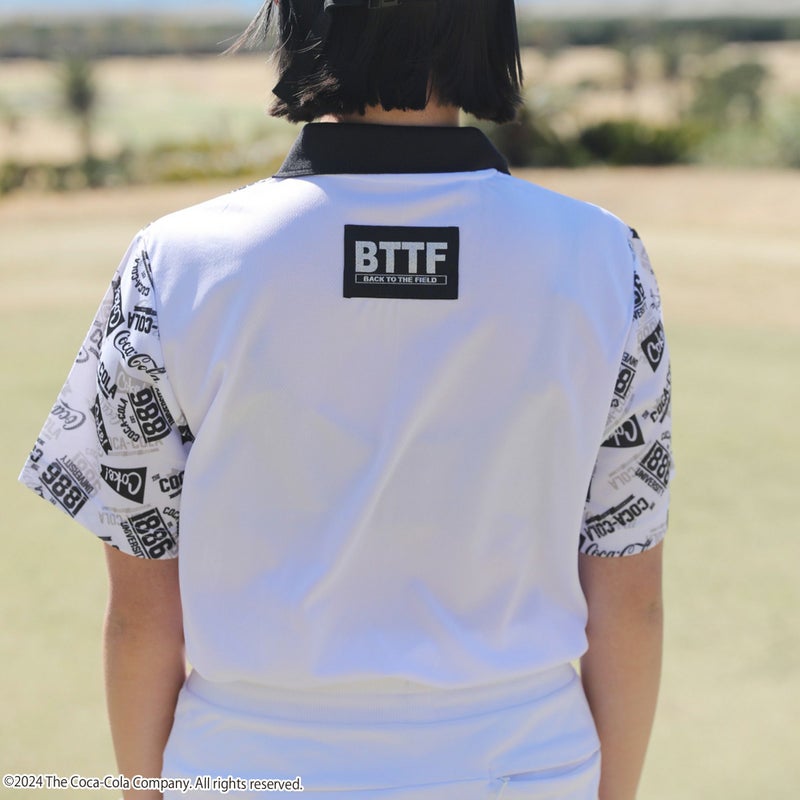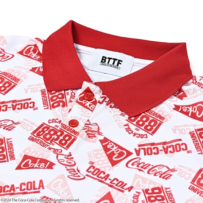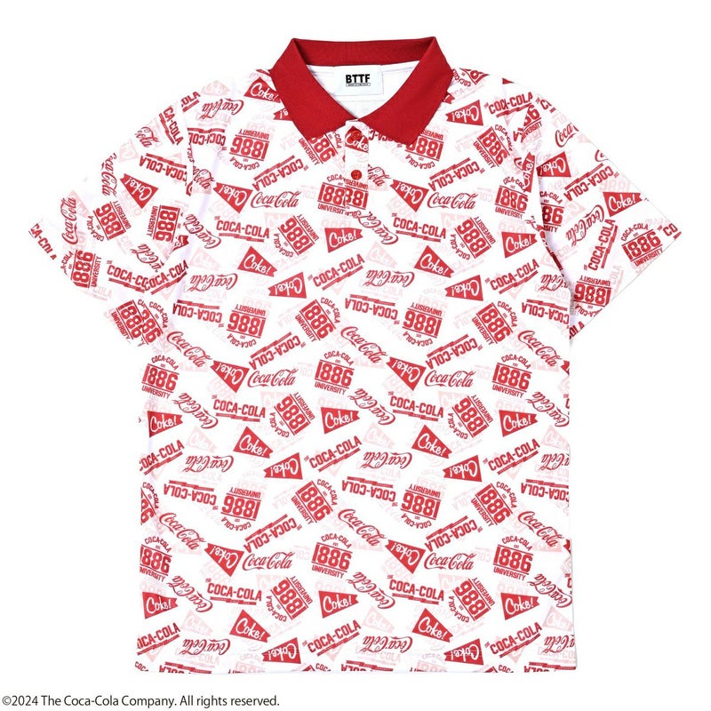 コカ・コーラのロゴが総柄にデザインされたポロシャツです。