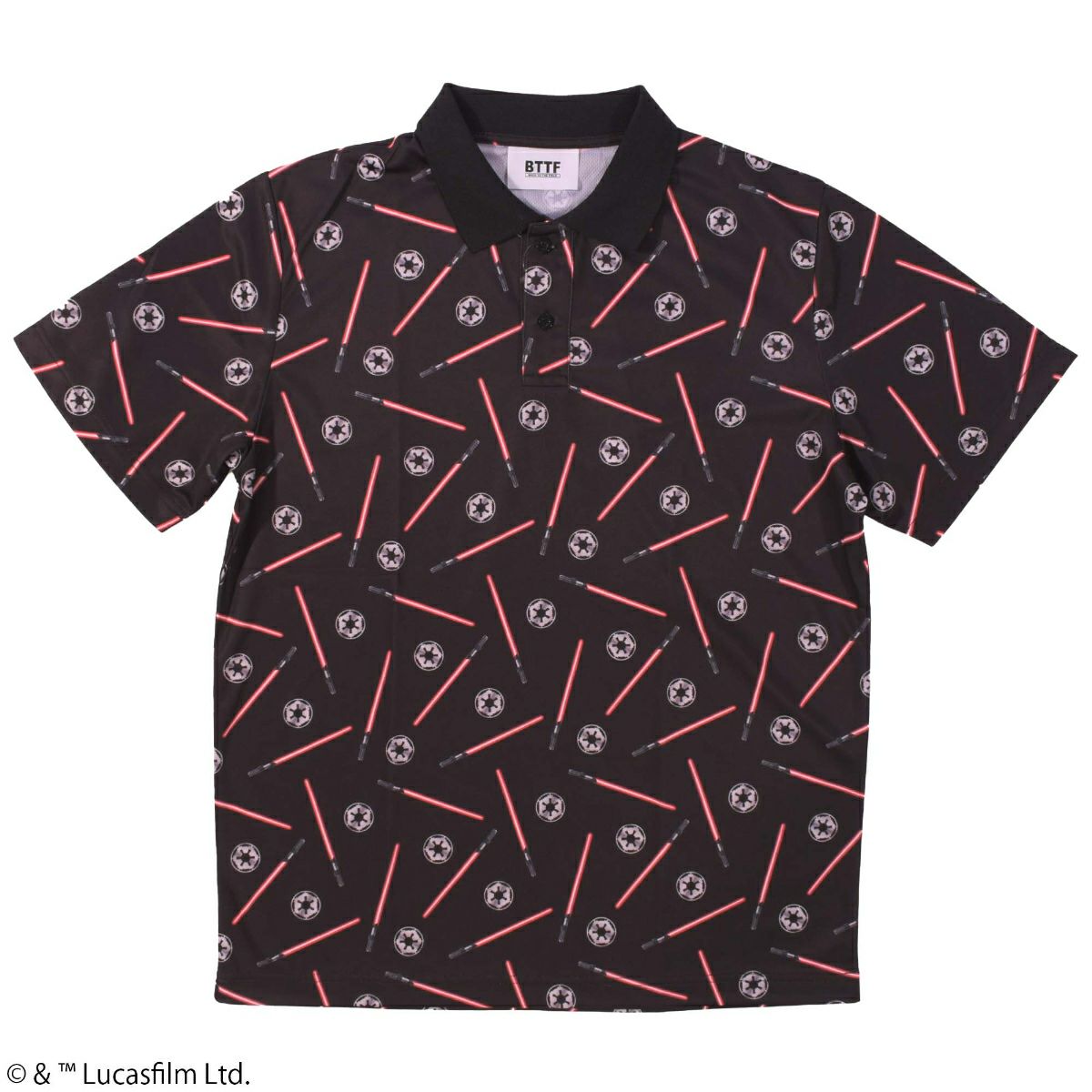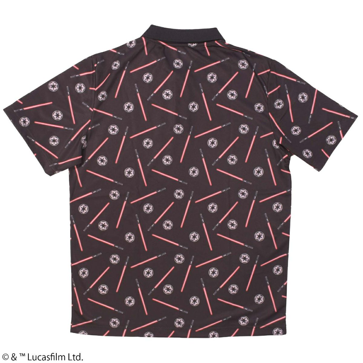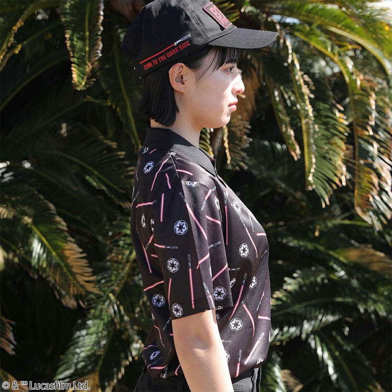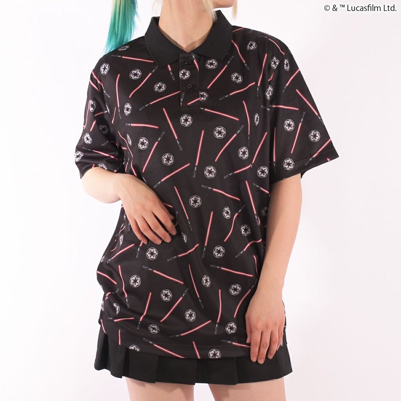 『STAR WARS』で銀河帝国が使用する「ライトセーバー」やアイコンが総柄にデザインされたポロシャツです。