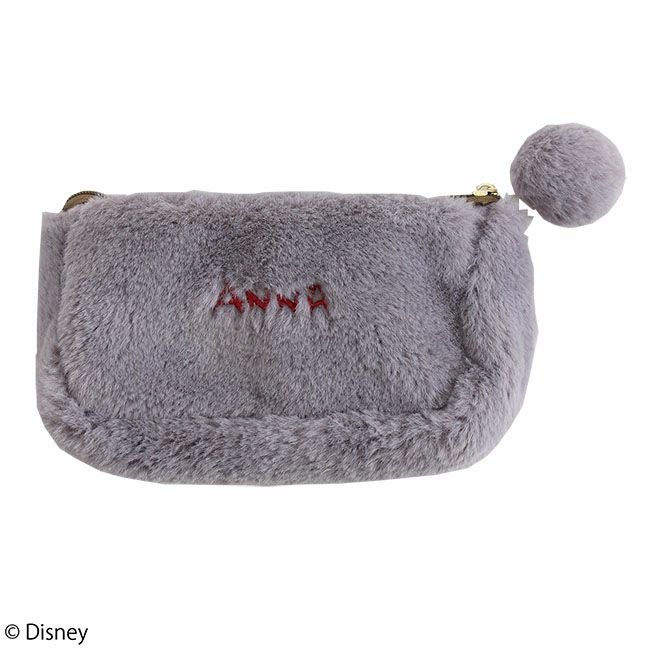スモーキーカラーのフェイクファーに「アナ」デザインのアップリケをあしらったポーチ。