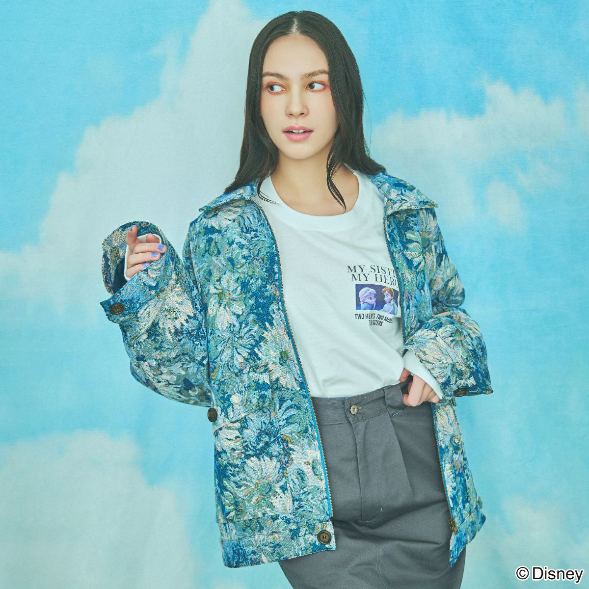 『アナと雪の女王』に登場する「アナ」、「エルサ」の幼少期のシーンがデザインされたロングスリーブTシャツです。
