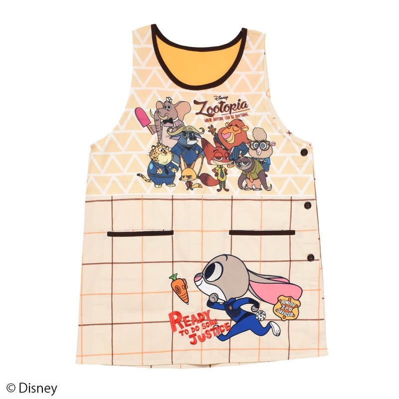 『ズートピア』に登場する仲間たちがデザインされた大人用カバーエプロン。