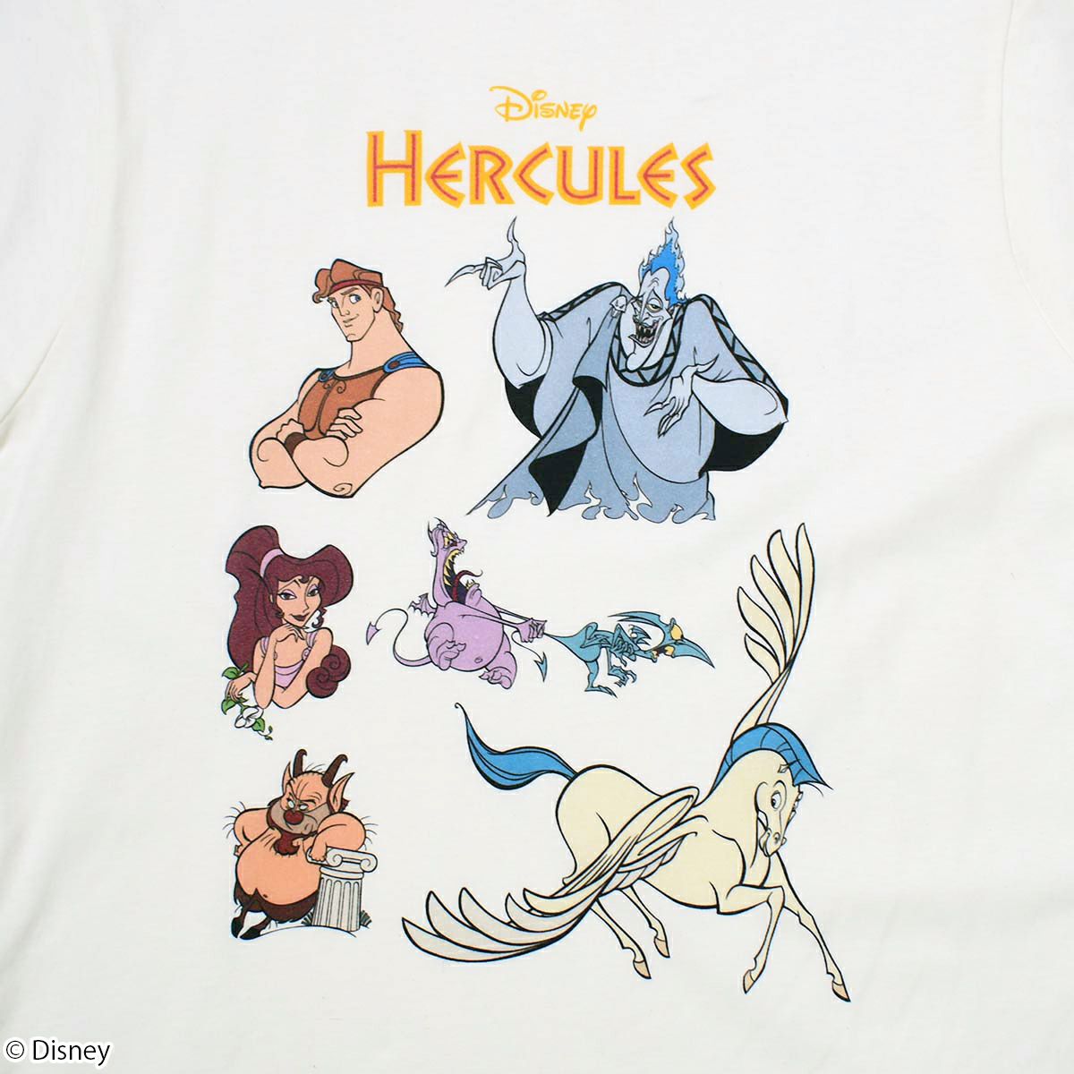 トートバッグには大人気「メガラ」を大きくプリントし、Tシャツには『ヘラクレス』に登場するキャラクター「ヘラクレス」、「ハデス」、「メガラ」、「ペイン&パニック」、「ピロクテテス」、「ペガサス」がデザインされています。