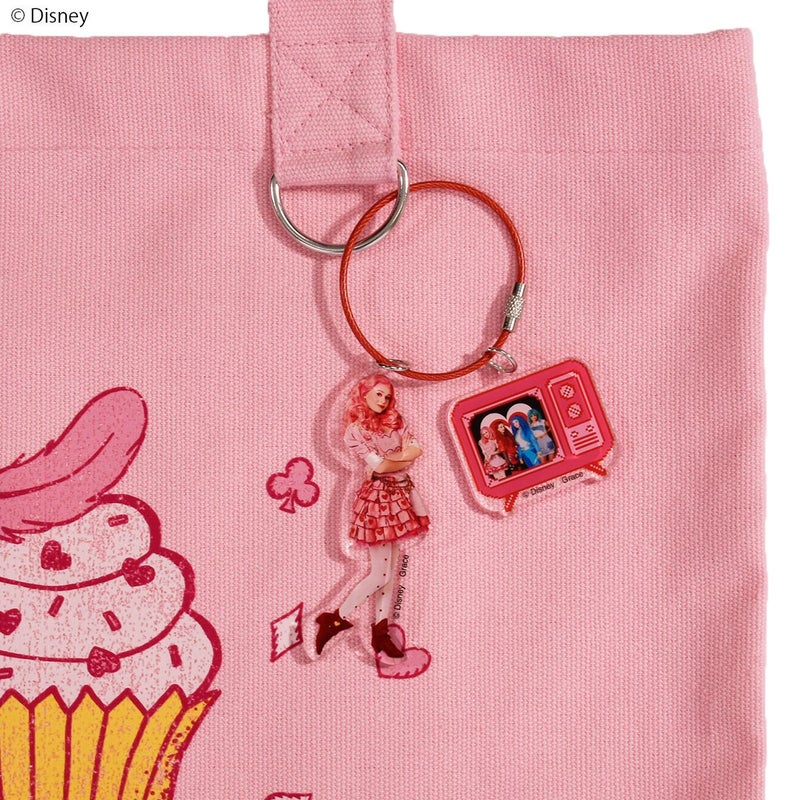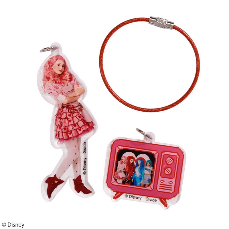 こちらは、『ディセンダント ライズ・オブ・レッド』に登場する若き日の「ハートの女王」「ブリジット」、TVの中には「ブリジット」、「レッド」、「クロエ」、「シンデレラ」がデザインされた2連アクリルキーホルダーです。