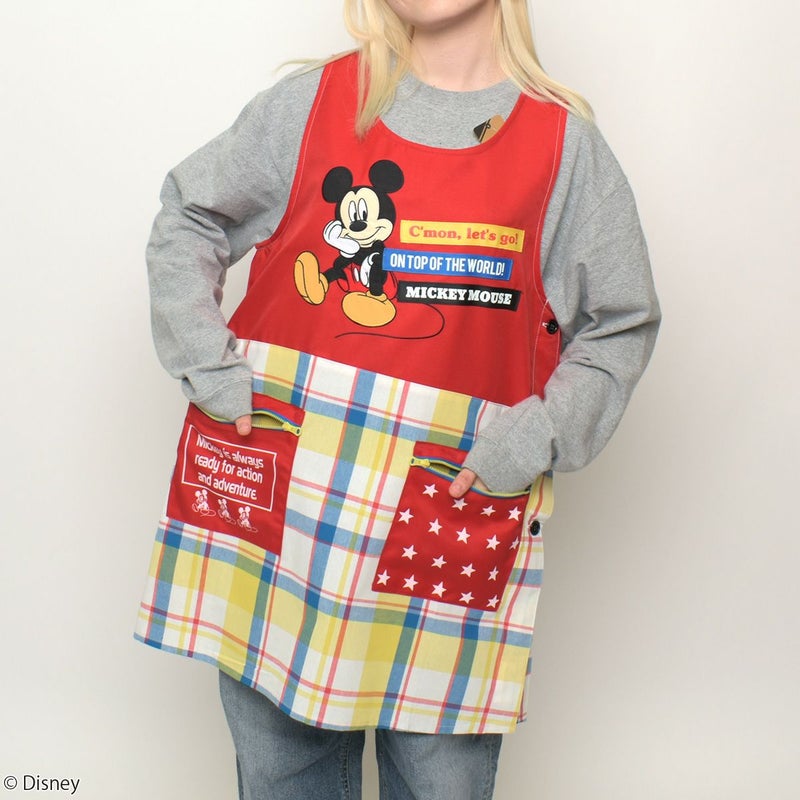 ミッキーマウスがデザインされた大人用カバーエプロン。 ゆったりとしたサイズ感なので、動きやすさはもちろん、着脱もしやすく、ママ、保育士さん、介護士さんにも人気のアイテム!
