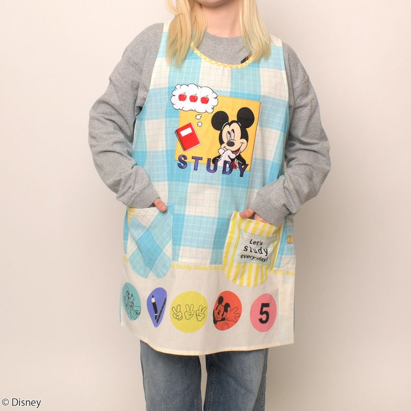 ミッキーマウスがデザインされた大人用カバーエプロン。 ゆったりとしたサイズ感なので、動きやすさはもちろん、着脱もしやすく、ママ、保育士さん、介護士さんにも人気のアイテム!
