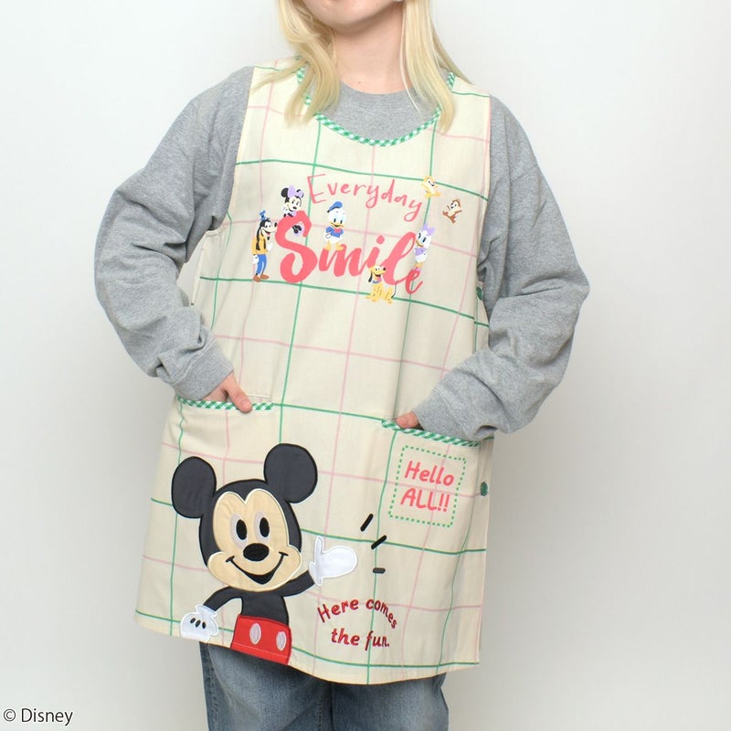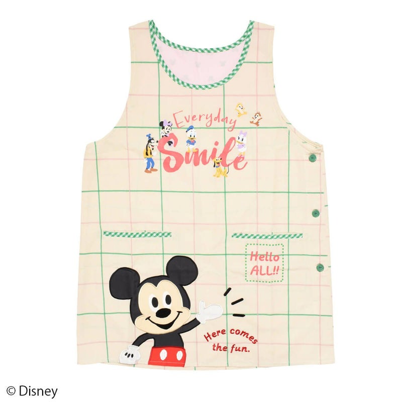 「ミッキーマウス」と仲間たちがデザインされた大人用カバーエプロン。