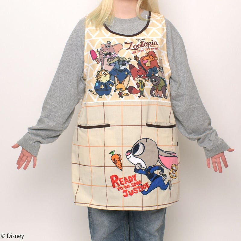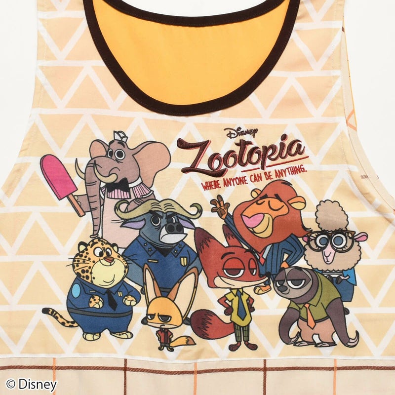 『ズートピア』に登場する仲間たちがデザインされた大人用カバーエプロン。