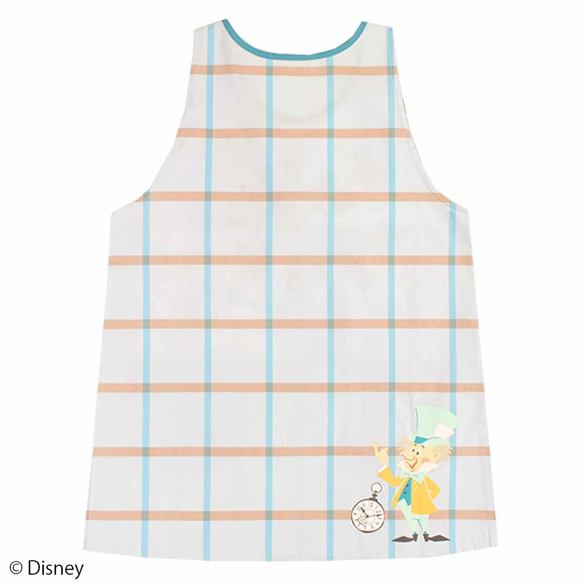 『不思議の国のアリス』の仲間たちがデザインされた大人用カバーエプロン。