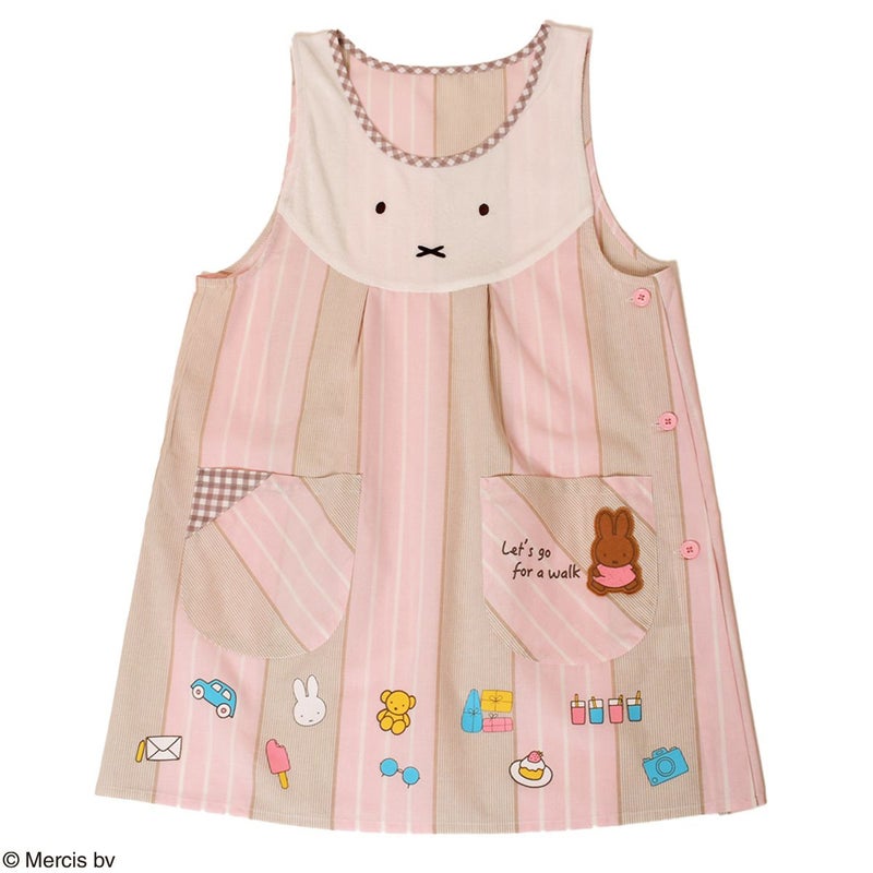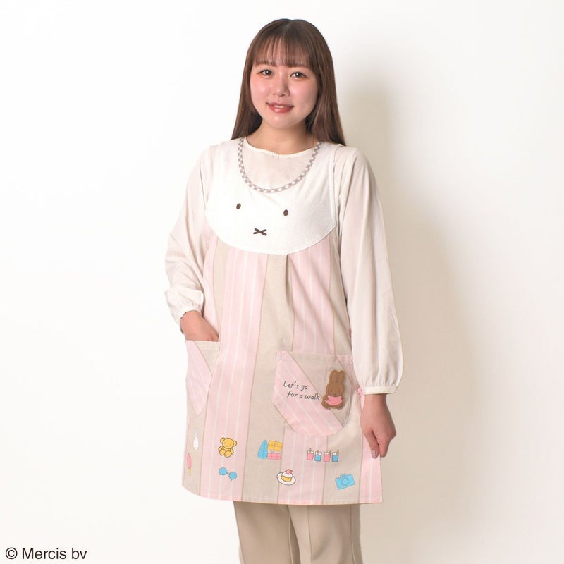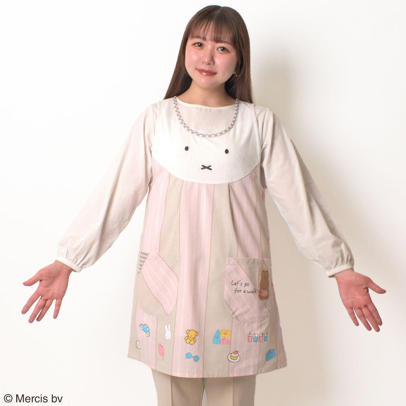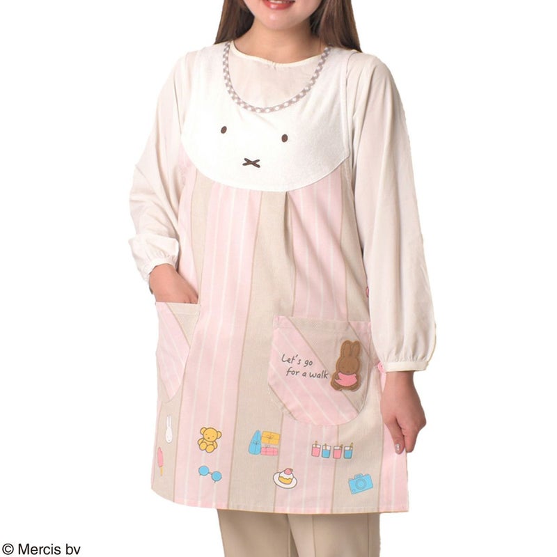 「ミッフィー」のフェイス部分がパイル生地(タオル生地)でフロントに大きくデザインされたエプロンです。