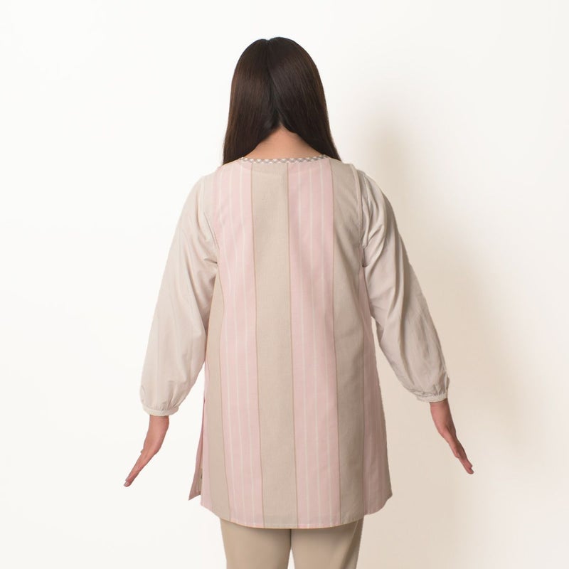 また、フロントの切り替え部分にタックがありゆったりとしたサイズ感です。
