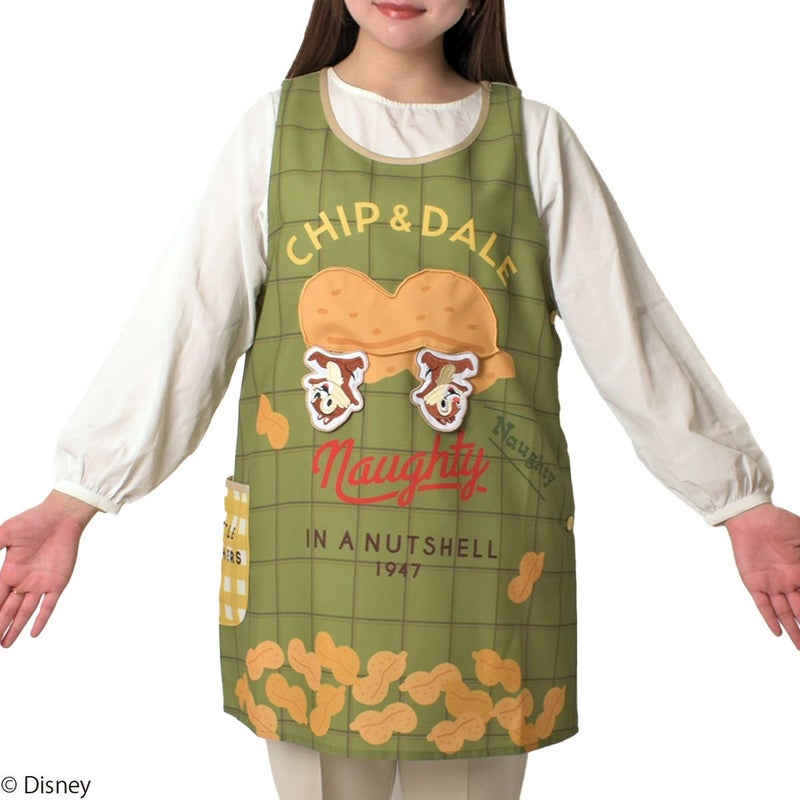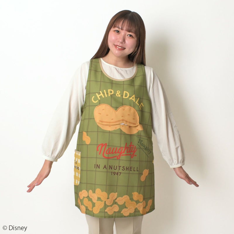 「チップ&デール」がひょっこり胸元から伸びるデザインのエプロンです。
