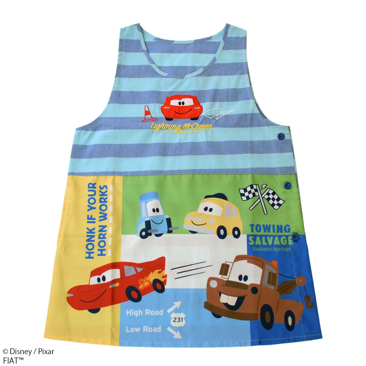 『カーズ』に登場するキャラクターがデザインされたエプロンです。