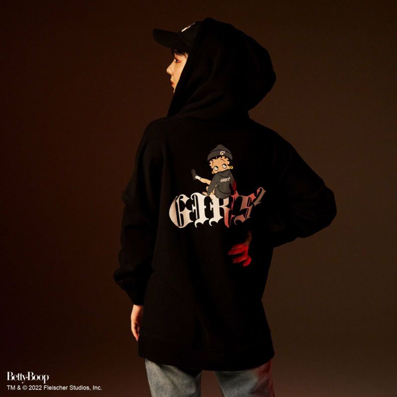 フロントにロゴとベティーちゃんの刺繍をあしらった目をひくデザイン。