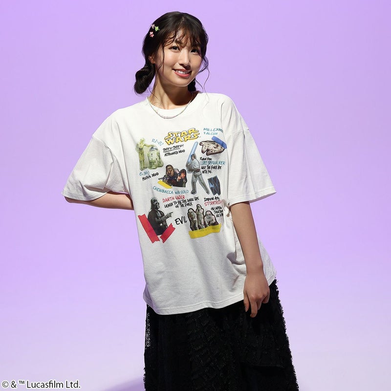 ステッカー風のキャラクターアートと刺繍ロゴがかわいい『STAR WARS』デザインのTシャツです。