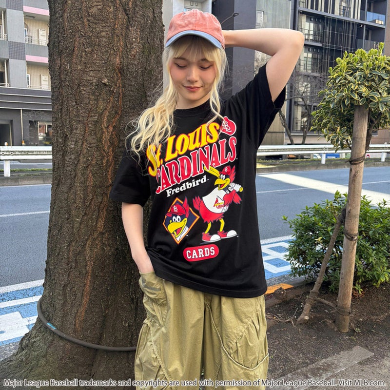 「セントルイス・カージナルス」のマスコット「フレッドバード」を大胆に配したインパクトのあるTシャツ。