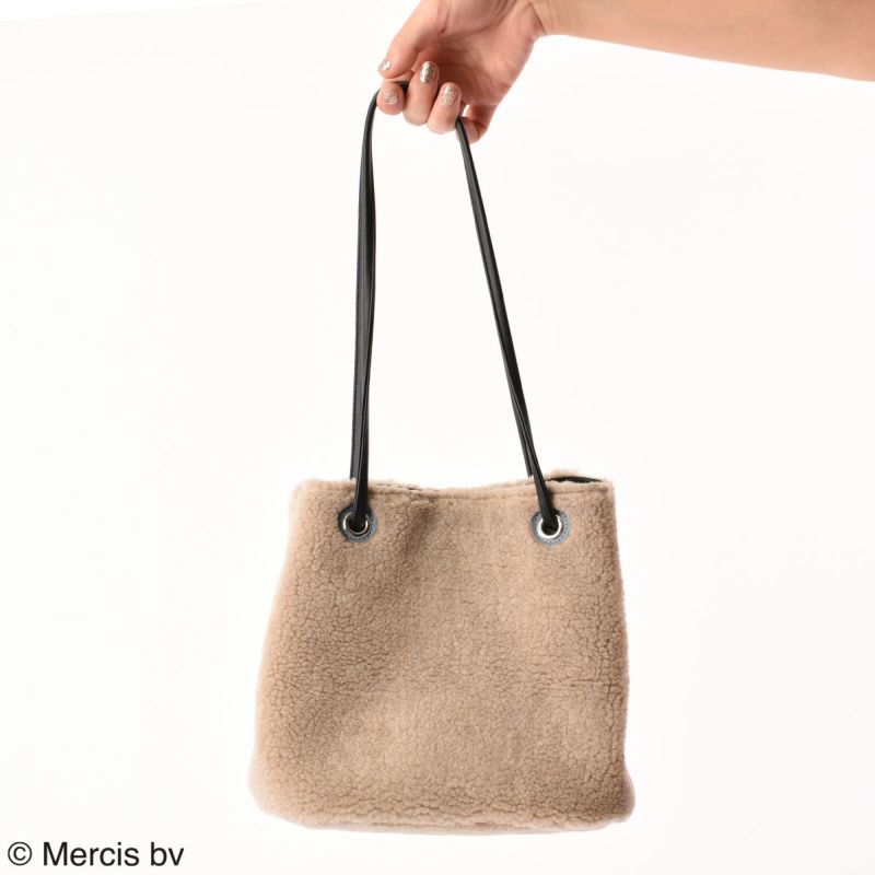 ふんわりもこもこボアのスクエアトートバッグ。