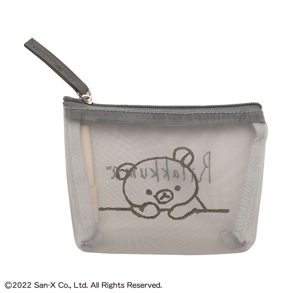 こちらはぼーっと考えごとをしている様子がキュートな「リラックマ」デザインのメッシュポーチです。
