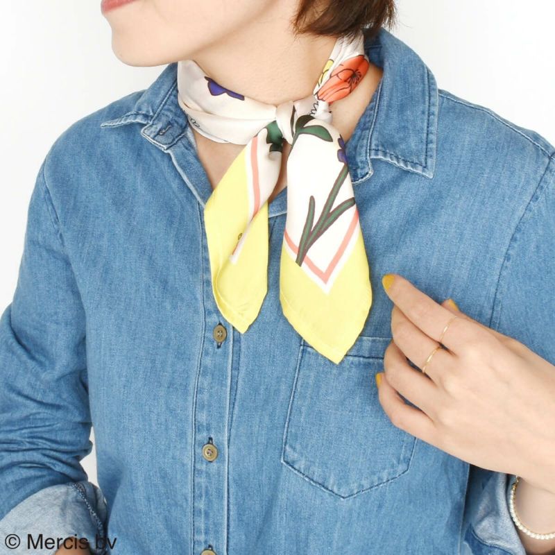 こちらはミッフィーとお花のアートをセレクトしたデザインのスカーフです。
